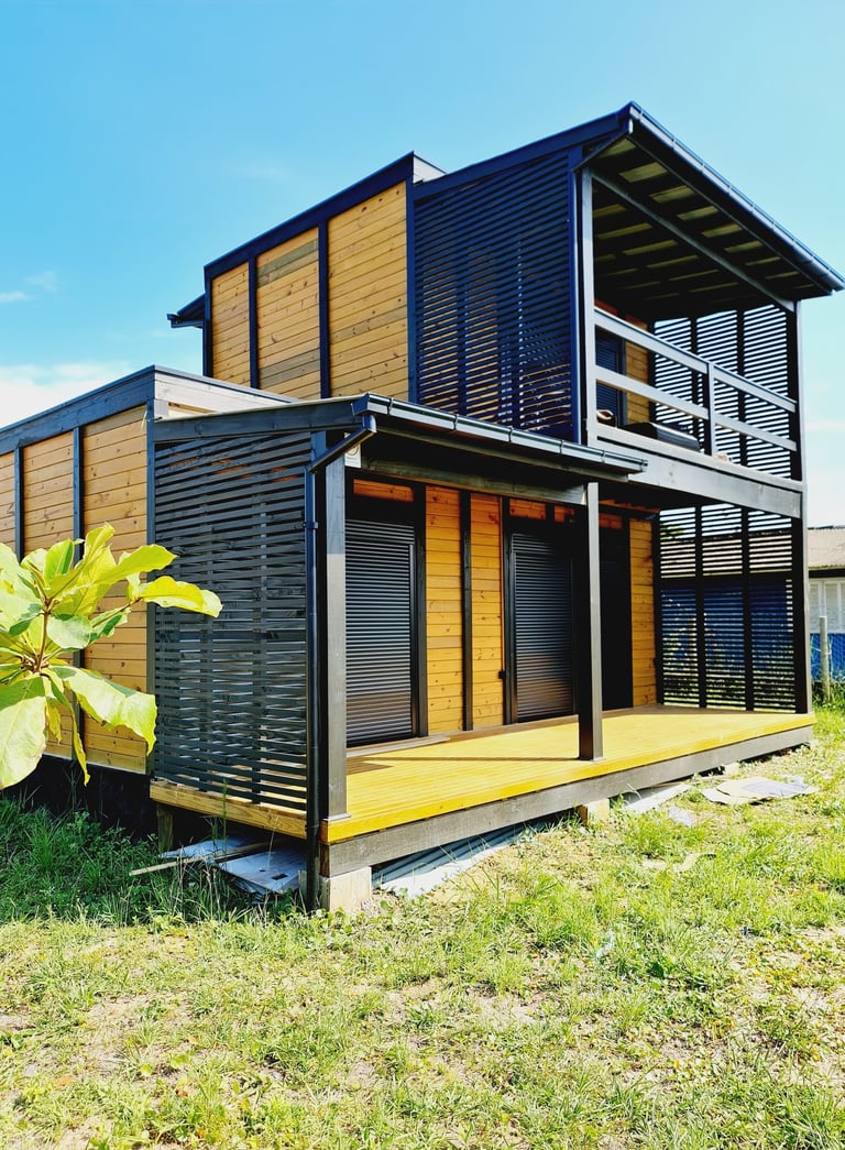 Projetos personalizados de casas, decks e pergolados sustentáveis. Clique no ícone do Whatsapp para entrar em contato.